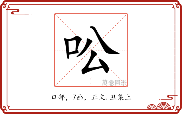 〔㕬〕字拼音是sòng,左右结构,可拆字为口、公。