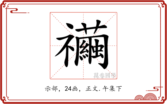 〔𥜲〕字收录于《康熙字典》正文・午集下,康熙部首是示部。