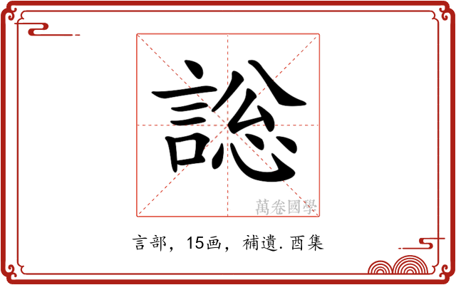 〔𧩟〕字收录于《康熙字典》補遺・酉集,康熙部首是言部。