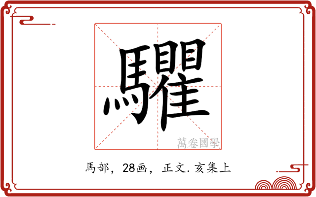 〔𩧘〕字收录于《康熙字典》正文・亥集上,康熙部首是馬部。
