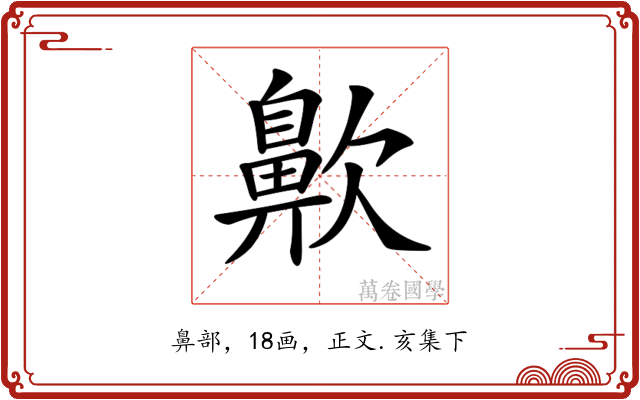 〔𪖗〕字收录于《康熙字典》正文・亥集下,康熙部首是鼻部。