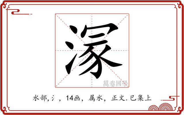 〔溕〕字收录于《康熙字典》正文・巳集上,康熙部首是水部。