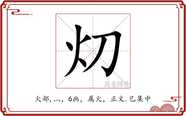 〔灱〕字拼音是xiāo,左右结构,可拆字为火、刀。