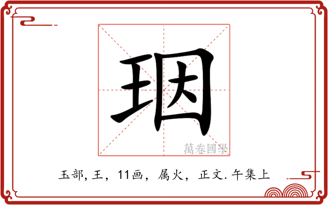 〔珚〕字收录于《康熙字典》正文・午集上,康熙部首是玉部。