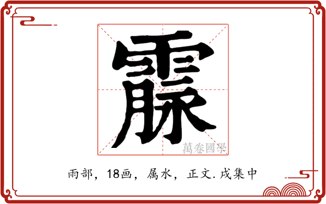 〔霡〕字收录于《康熙字典》正文・戌集中,康熙部首是雨部。