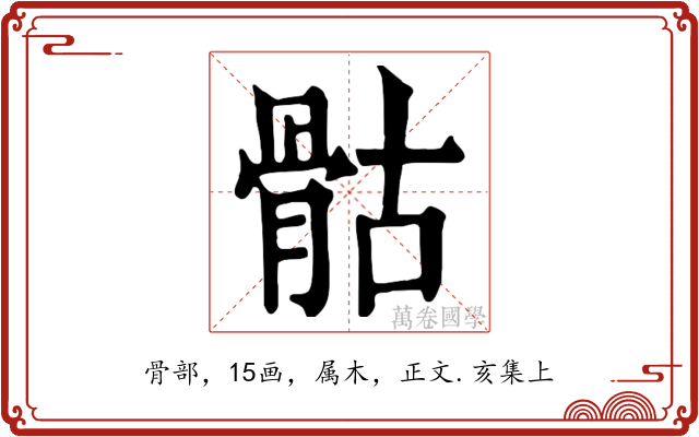 〔骷〕字收录于《康熙字典》正文・亥集上,康熙部首是骨部。